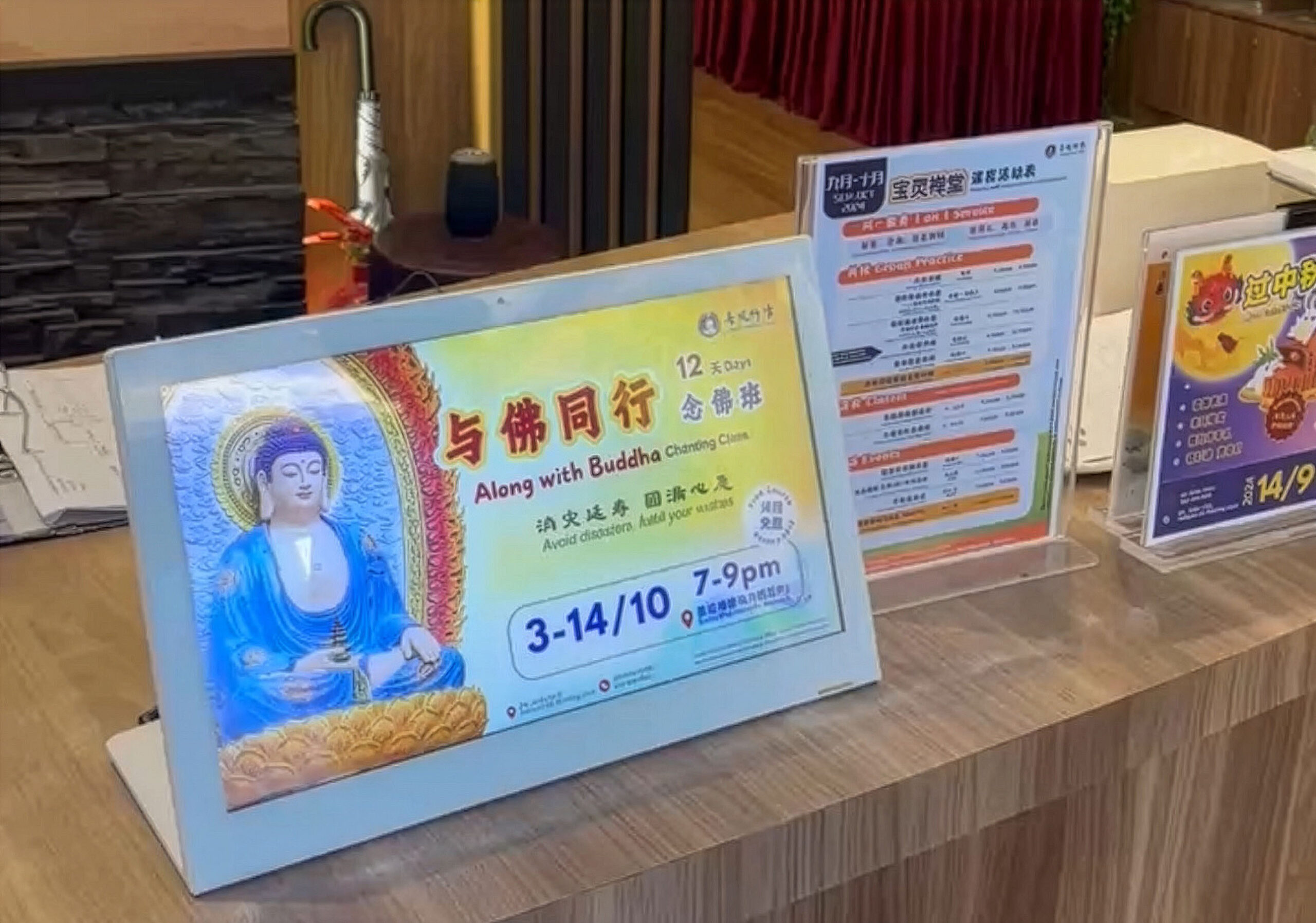 A compact 17.3″ L-shape desktop display for event highlights, designed to be lightweight, portable, and simple to operate with plug-and-play functionality.