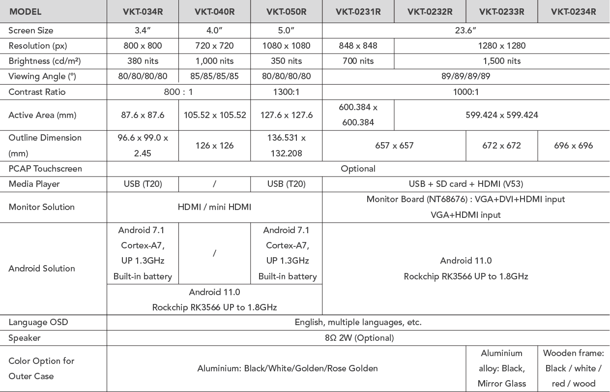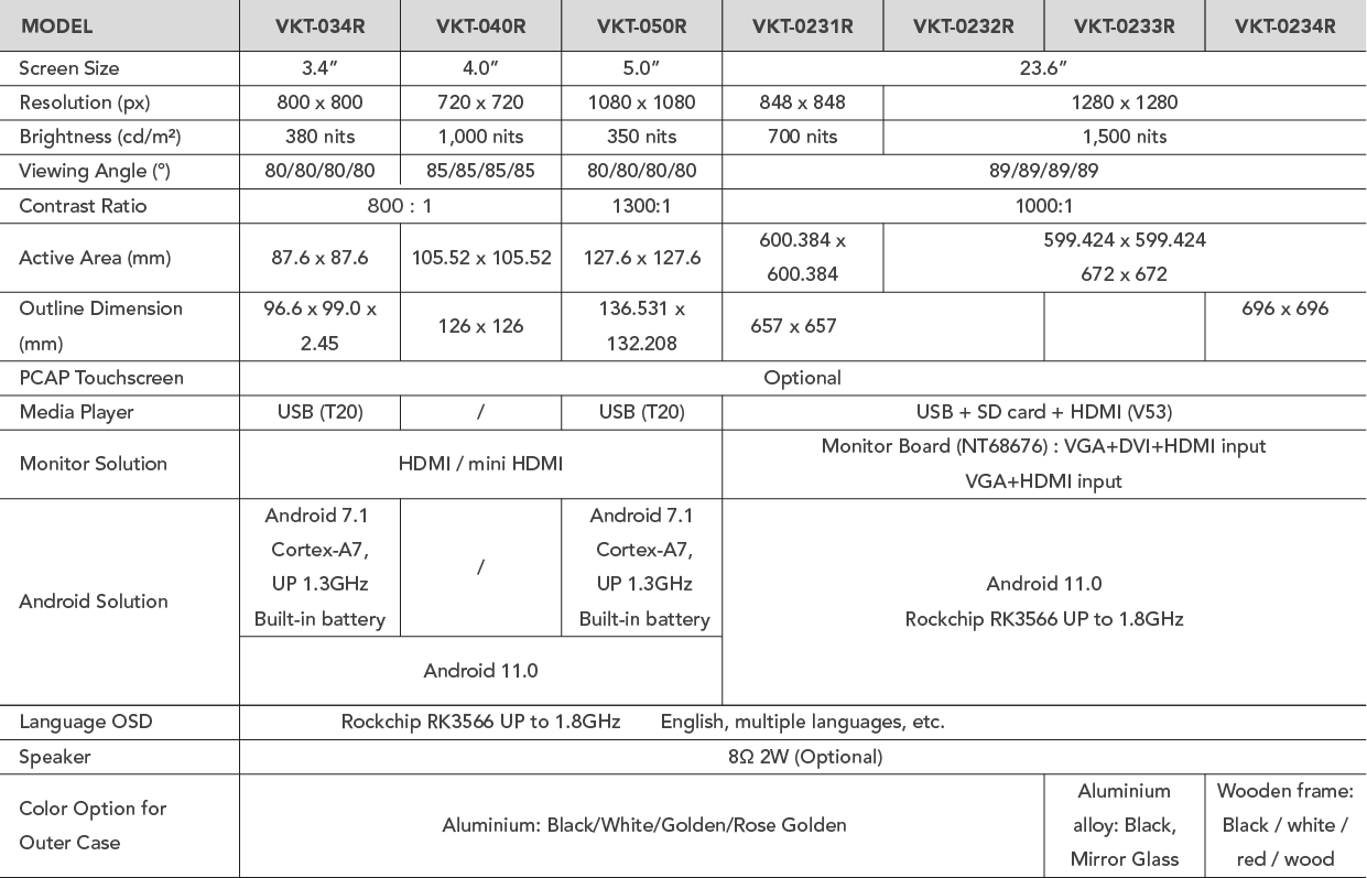 Features a sleek round form factor available in various sizes (3.4” to 23.6”), offering a striking and modern visual element ideal for creative branding, digital art, and interactive installations.