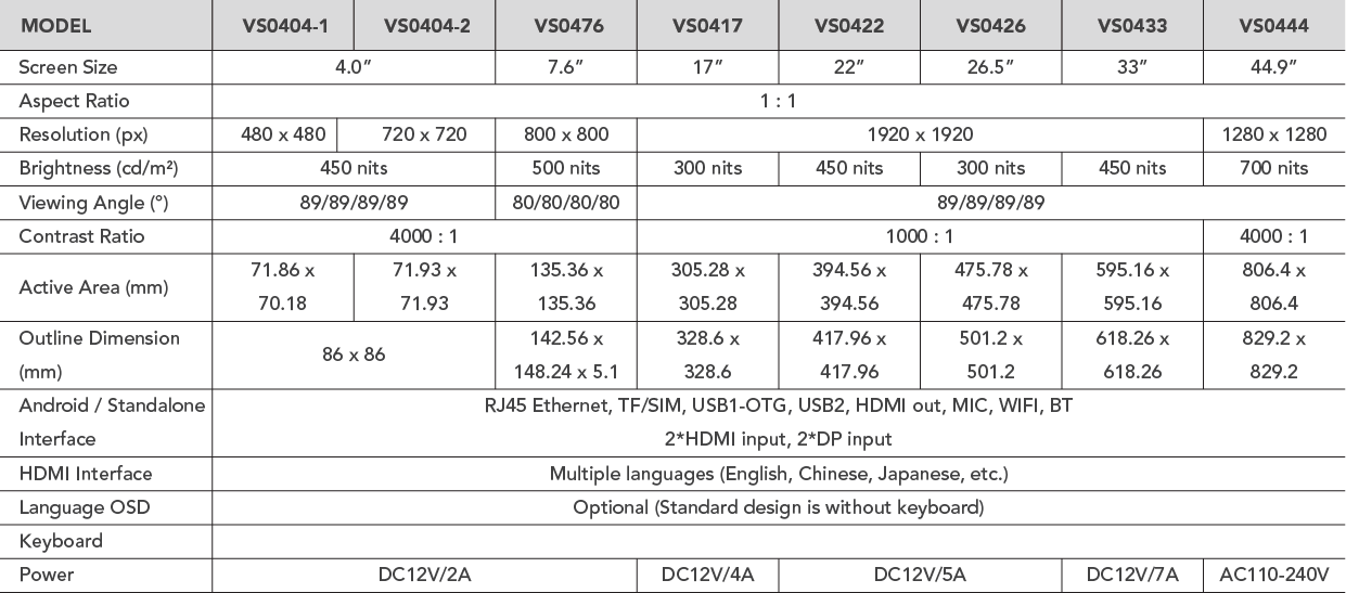 Delivers full HD resolution up to 1920×1920, with high brightness up to 700 nits and superior contrast ratios of up to 4000:1 for crisp, vivid visuals in any lighting environment.