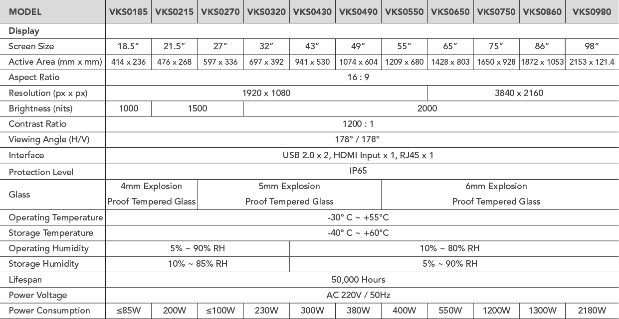 Powered by a stable AC 220V / 50Hz system and engineered for 24/7 continuous operation, the signage ensures uninterrupted performance. It features low power consumption (≤85W–1800W, depending on model) and an extended 50,000-hour lifespan for long-term efficiency.