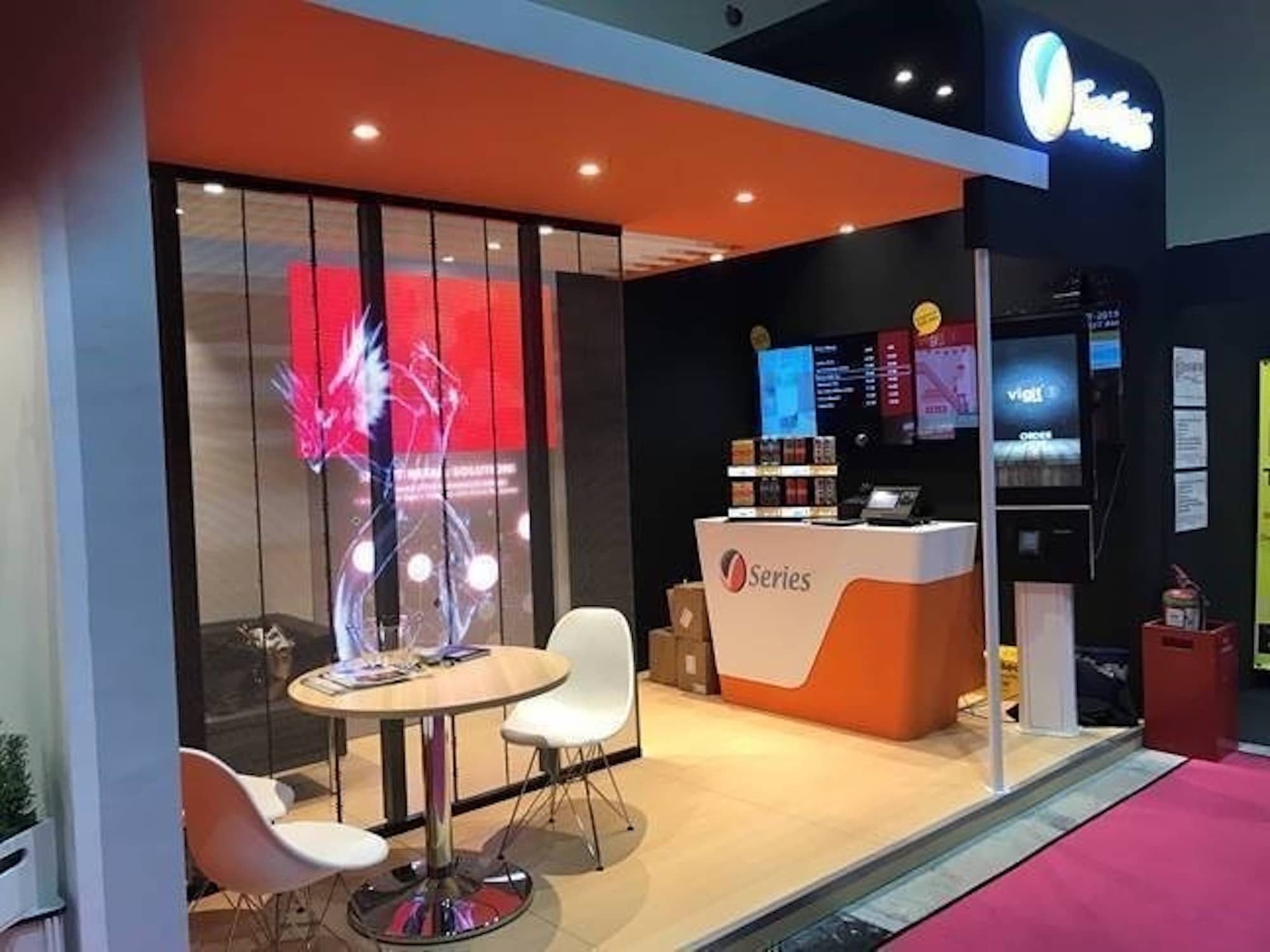 Located in Hall 8, our booth showcased many V-Series products and solutions such as our LED panel, customized to become a smart retail rack, our transparent LED with attractive visuals and our self-ordering kiosk with all functions available for demonstration. V-Series also sponsored digital signage standees for the Archidex exhibition, complete with sponsored Archidex stickers, that were positioned all around the different exhibition halls.