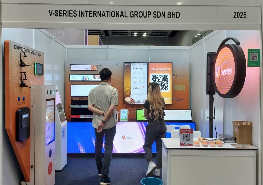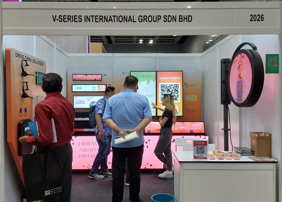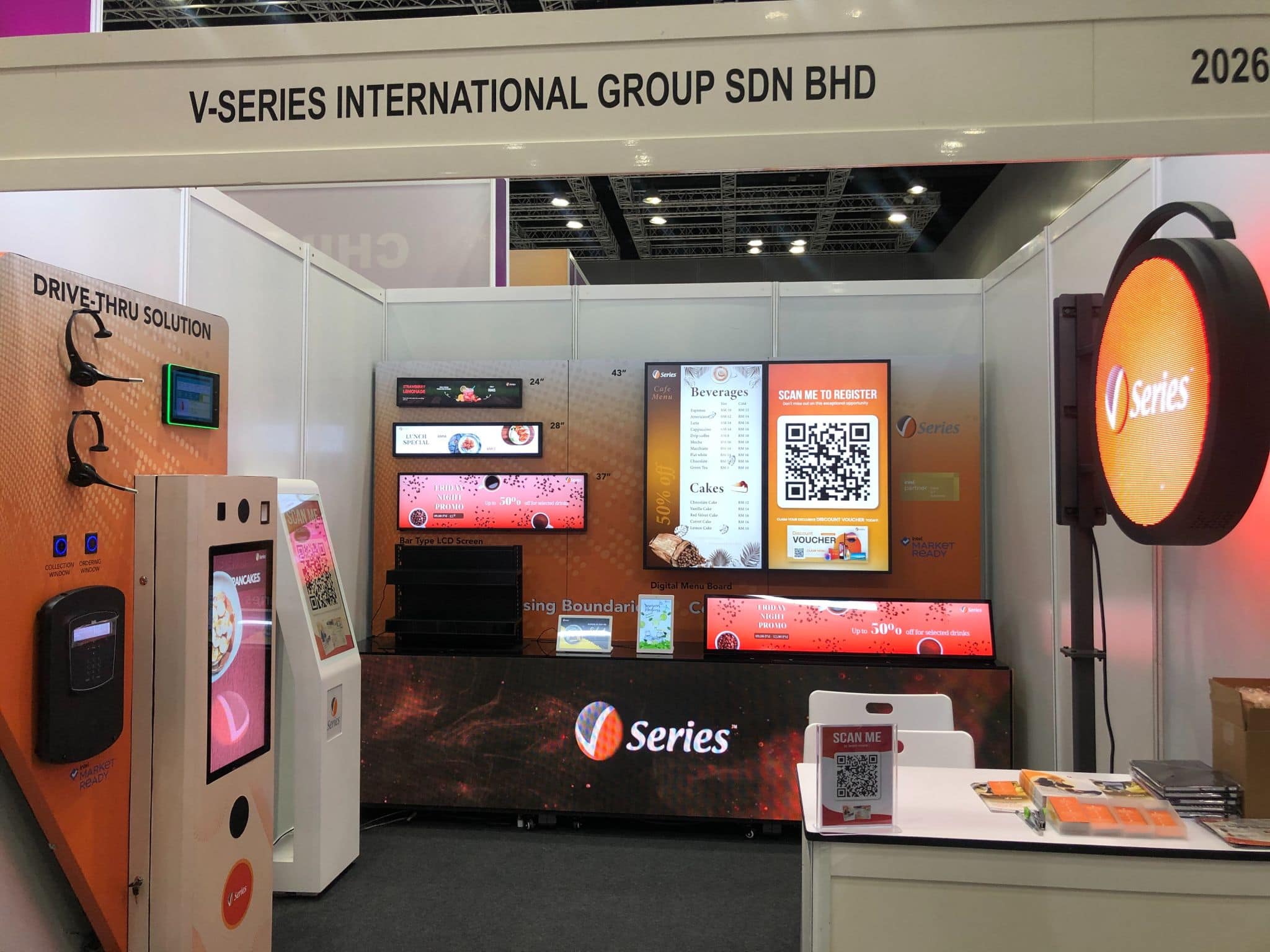 At the meticulously designed booth, V-Series captivated visitors with an array of innovative solutions designed to redefine the dining experience, including Drive-Thru Solutions & Analytics, Digital Menu Boards, Bar-Type LCD Signage of various inches, L-shape Desktop Signage, Interactive Service Kiosk, Round Pop LED, and P2 LED Display. V-Series has unveiled the future of Quick Service Restaurant (QSR) with the revolutionary Drive-Thru Solutions & Analytics, combining convenience with intelligent data insights. With V-Series’ Drive-Thru Analytics, management can gain insight into the time taken for each meal pickup at the drive-thru lane, empowering them with real-time data on staff performance across worldwide stores.