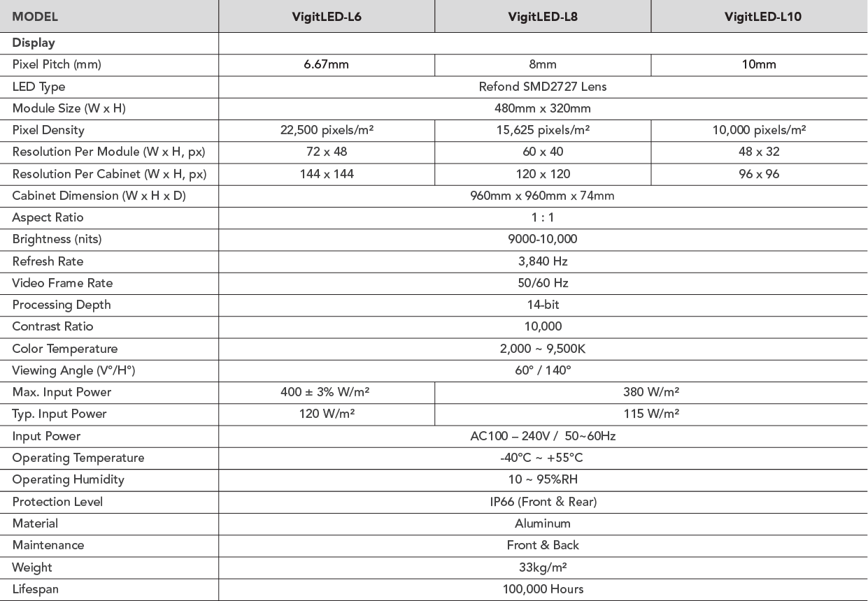 Engineered with energy efficiency in mind, the L-SMD Series consumes as little as 115 W/m² (typical), significantly reducing operational costs. Despite its high performance, it maintains low power draw and offers long-term sustainability without compromising visual quality.