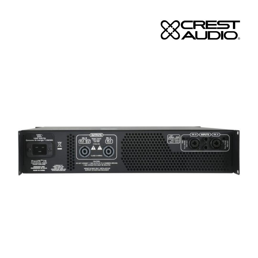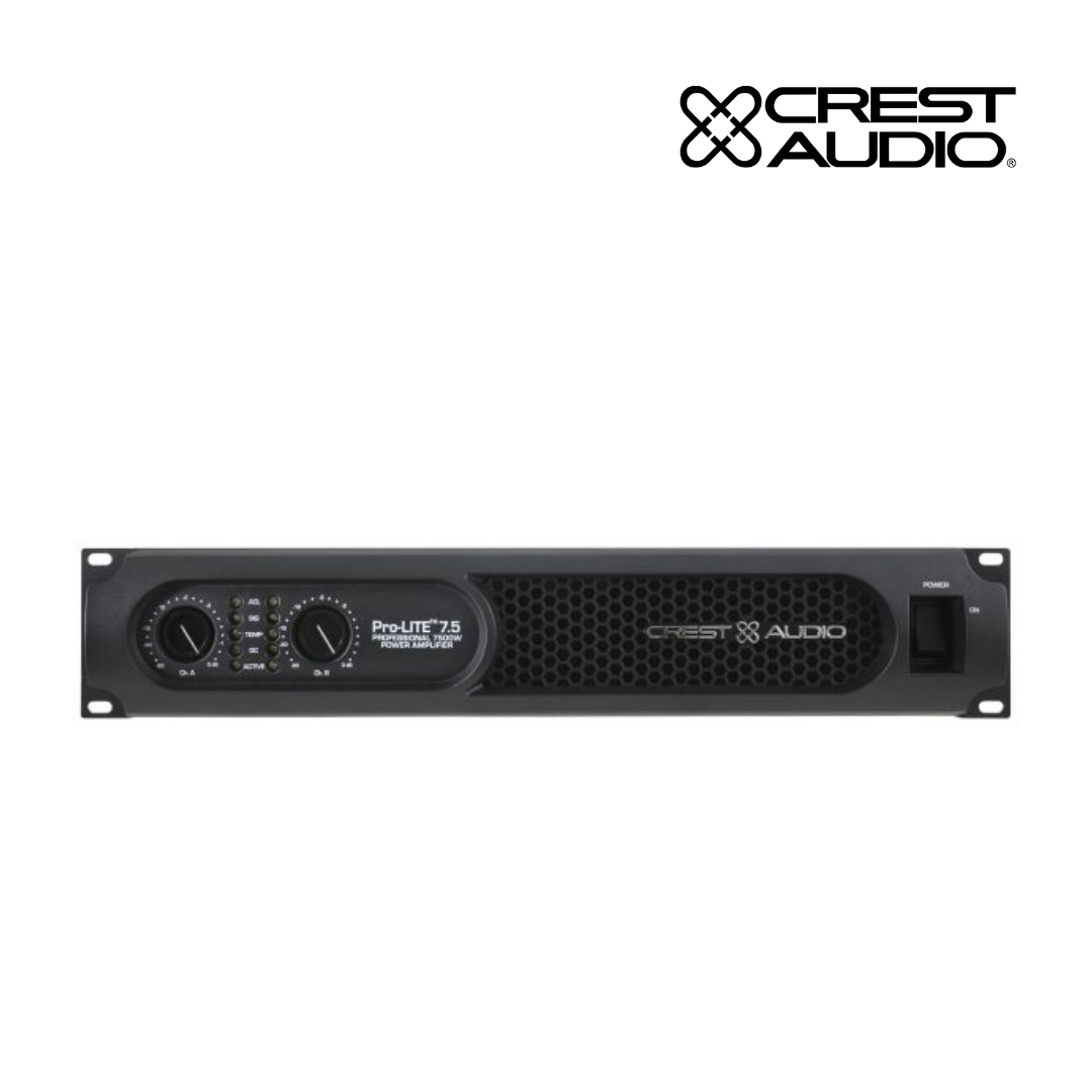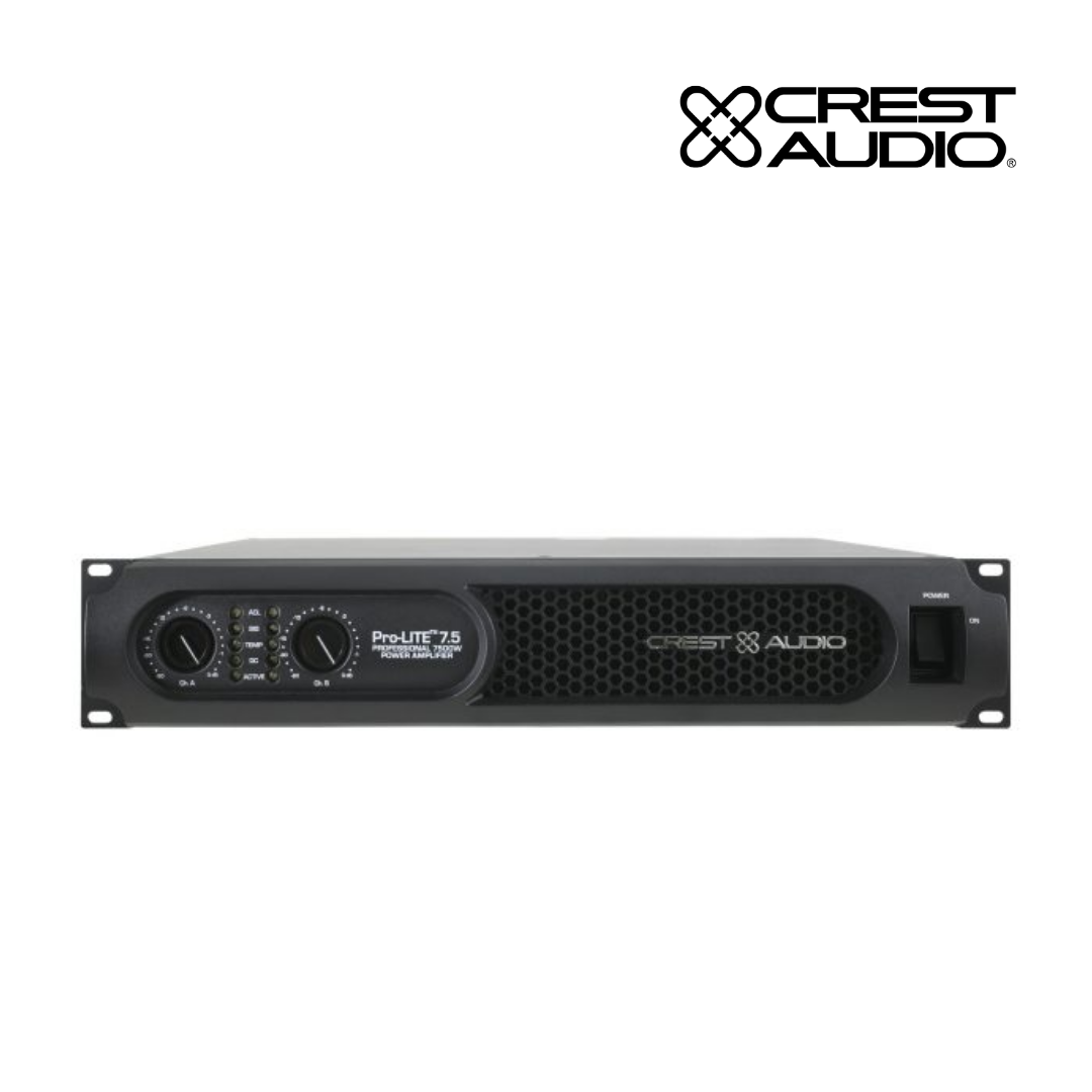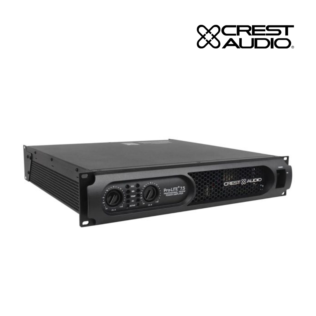 The Crest Audio Pro-LITE 7.5 amplifier is designed with an advanced, high-speed class D design with a switch-mode power supply that reduces weight while increasing reliability, thermal efficiency and output power.