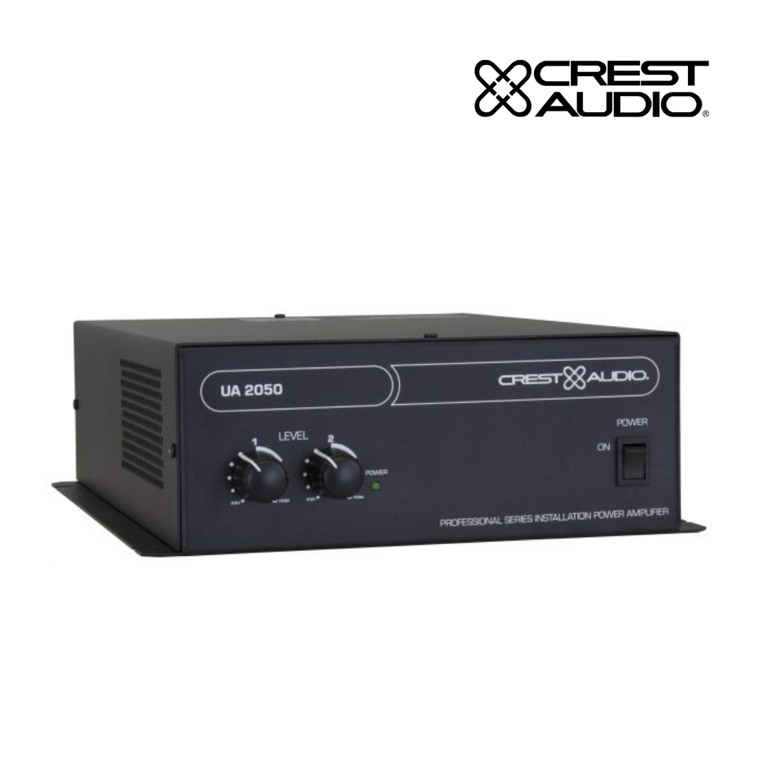 The Crest Audio UA 2050 utility amplifier provides installers and contractors a cost effective, efficient and inconspicuous solution for background music and paging applications. The UA 2050’s small form factor is perfect for mounting under the counters, on the closet walls or on the shelves of retail spaces, restaurants and offices. Despite its convenient size, the UA 2050’s features, versatility and power are ideal for any application where background music and paging are required.
