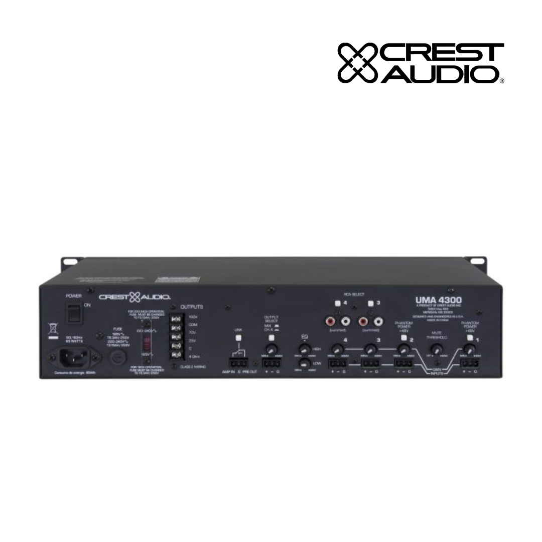 The Crest Audio UMA 4300 mixer amplifier provides installers and contractors a simple and efficient solution for a broad range of sound reinforcement, paging and background music applications in retail spaces, restaurants, lounges and waiting rooms.