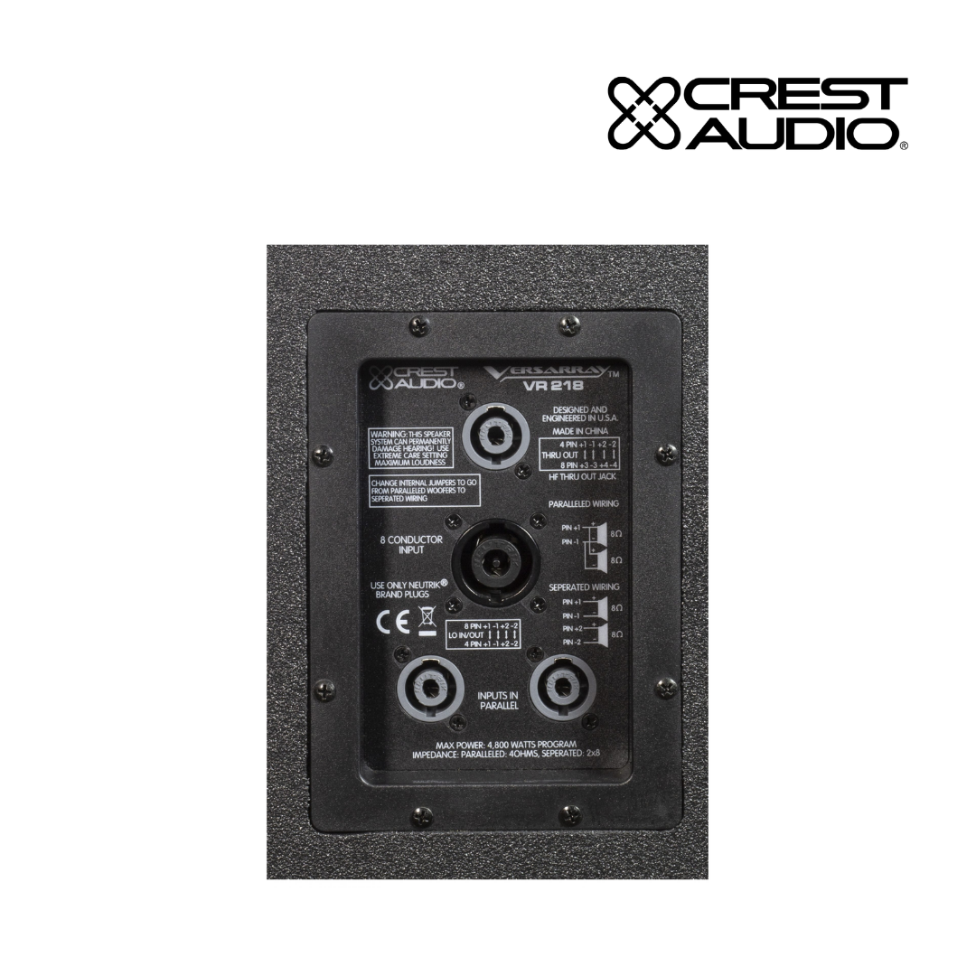 The Crest Audio Versarray 218 Mk III Sub incorporates the ultra-high power Lo Max 18″ woofer and a new cabinet design. The Versarray 218 Mk III is a direct radiator vented subwoofer designed specifically for the most demanding Pro-Audio applications.