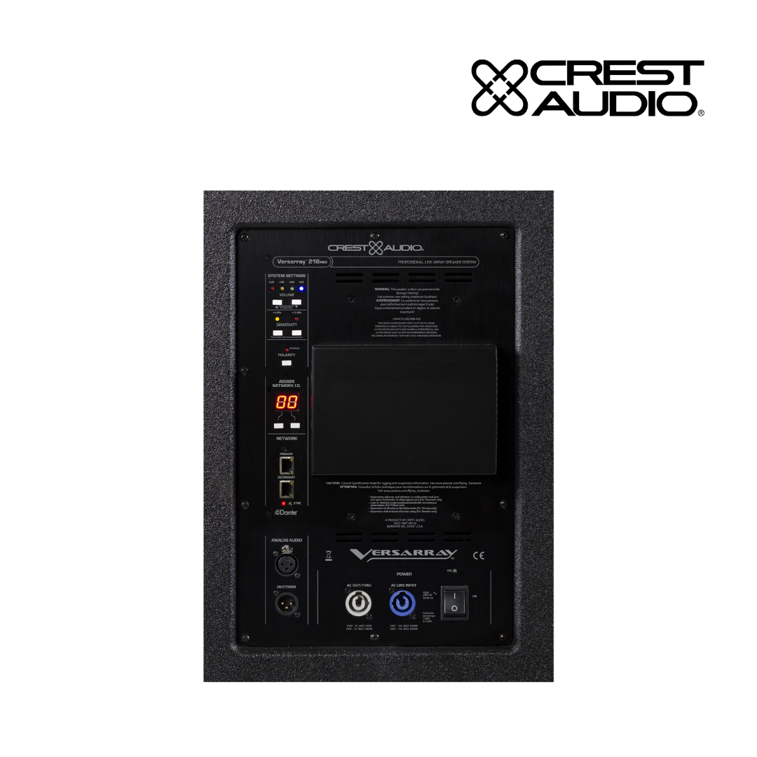 An optional special Sub Support Frame rigging adaptor mounts to the Versarray PRO 215 Sub, and allows Versarray PRO 112’s to be flown below the Sub, with the Sub being flown from a Crest Audio Versarray Halo.