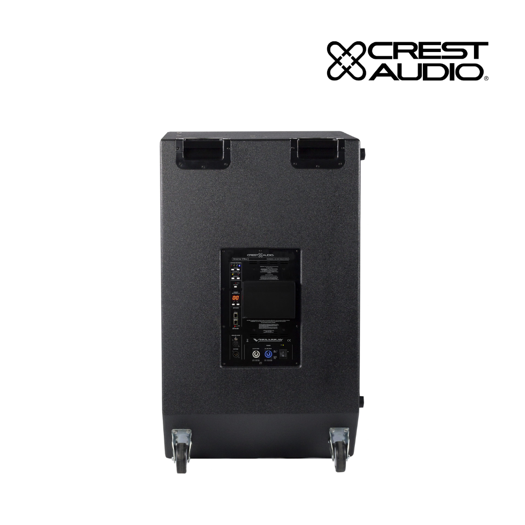 The Crest Audio Versarray PRO 215 Sub powered subwoofer speaker system consists of a pair of 15” Low Rider® woofers combined with a supersolid cabinet with a simple, quick, yet flexible rigging system. Designed to provide modular coverage of small to medium venues, and intended for use with the companion Crest Audio Versarray PRO 112 models, the Versarray PRO 215 Sub offers excellent versatility with a very high performance capability. The subwoofer system consists of the following woofer components: a pair of 15” Low Rider series woofers with a very long throw 4” voice coil structure. Capable of over 800 Watts of continuous power handling (AES Std 2-1984) each, these woofers can project a lot of low frequency energy.