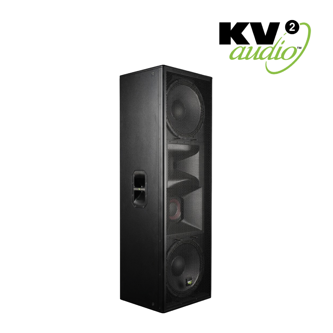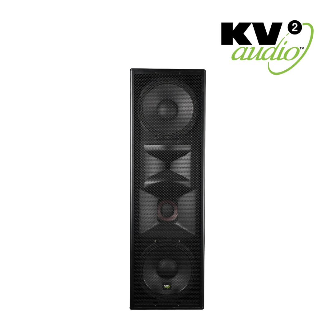 The ESR215MkII is a large scale full-range 3-way loudspeaker system with a wide horizontal dispersion of 110 degrees. Designed for use with the ESR3000MkII tri-amplified stereo electronic control pack, the ESR215MkII loudspeaker system features two 15″ woofers, an 8″ mid-range driver and the same large scale NPVD 3″ compression driver found in KV2 Audio’s