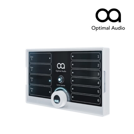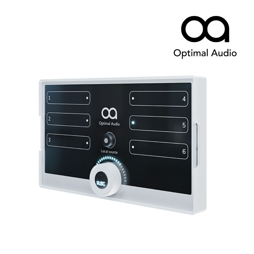ZonePad 1 is an elegant wall mounted controller, providing users clear and simple access to the essential controls of one zone of an Optimal Audio system.