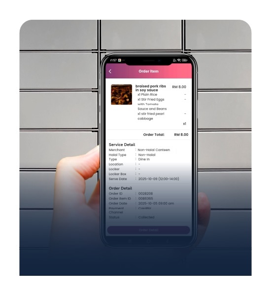 A smart cafeteria system that digitizes meal ordering, kitchen workflows, and self-collection using connected platforms and lockers for faster, cleaner, more efficient dining.